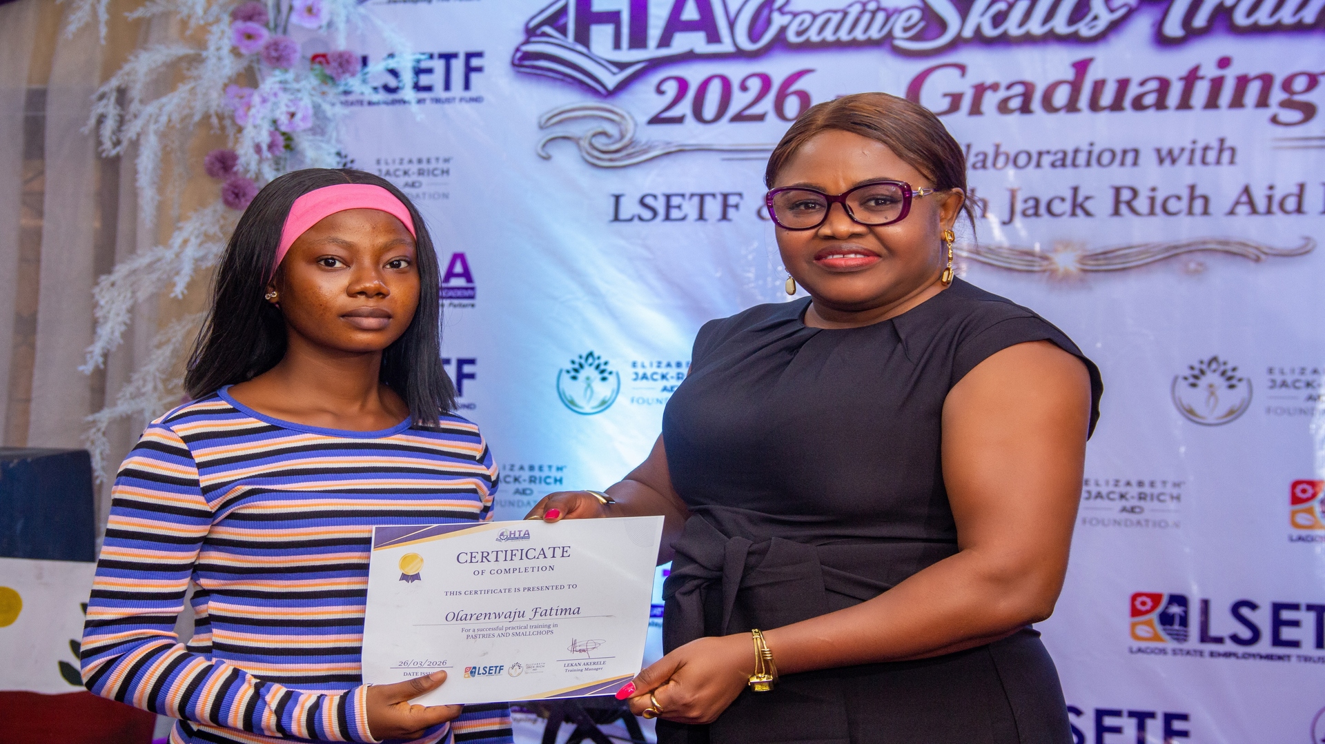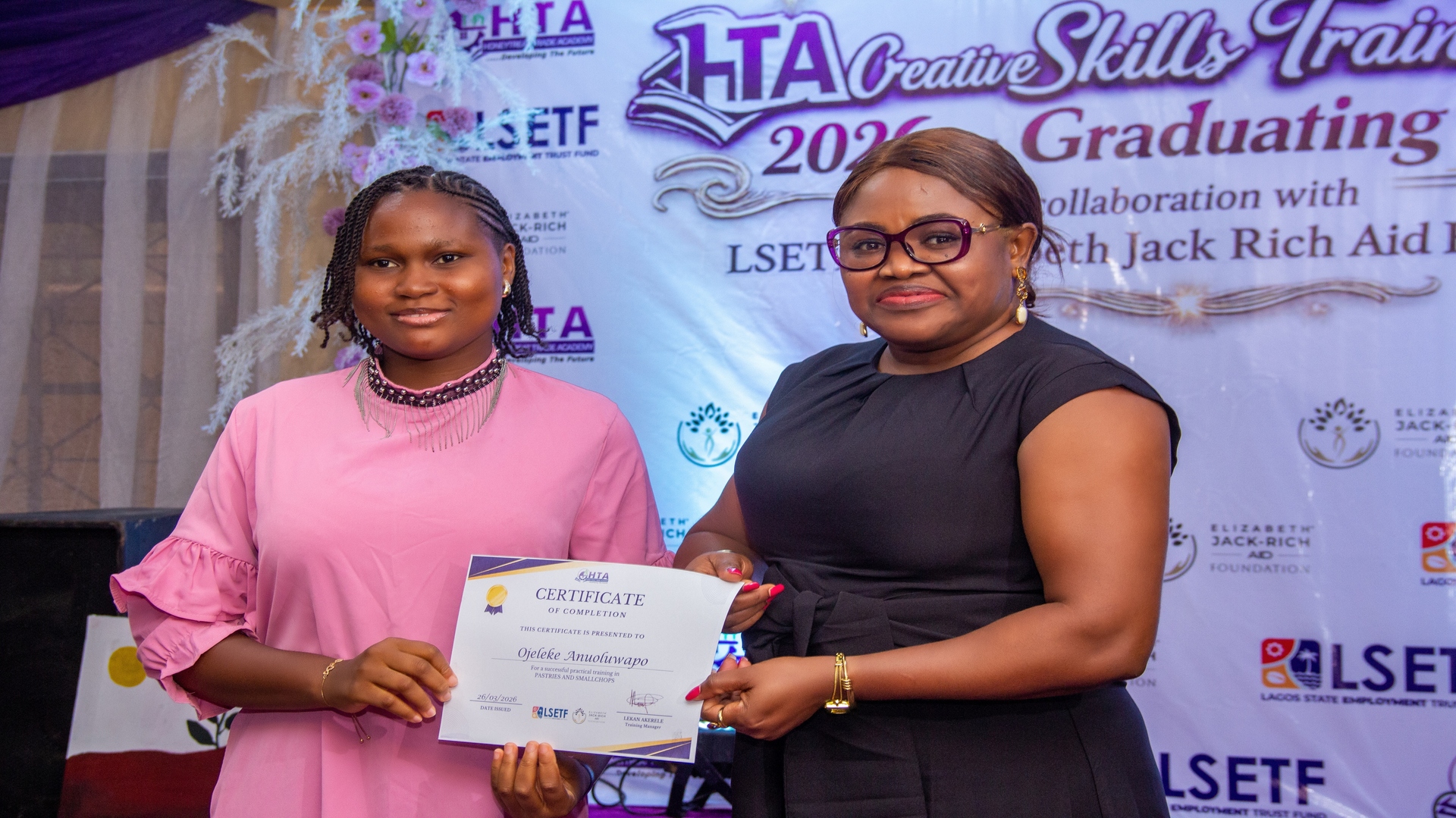 Elizabeth Jack-Rich Aid Foundation (EJRAID) launched the Youth Skills Acquisition Project (Y-SAP) to empower 80 young women with high-demand, cost-effective vocational skills suitable for start-up businesses. To successfully deliver this vision, EJRAID partnered with the Lagos State Employment Trust Fund (LSETF) and HoneyTreat Trade Academy (HTA), both of which have established reputations for youth empowerment and human capacity development in Lagos State.